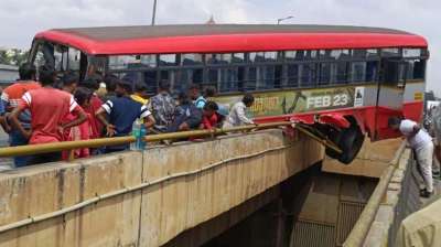 दमोह। दमोह जिले के तेजगढ़ थाना क्षेत्र के लकलका में बुधवार रात एक यात्री बस बाढ़ग्रस्त पुल से उतरकर पानी में चली गई। गनीमत रही कि बस का पिछला हिस्सा...