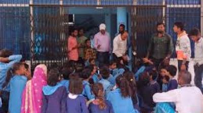 शिक्षिका के खिलाफ ग्रामीणों का प्रदर्शन, स्कूल में लगाया ताला