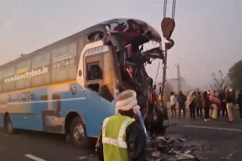 उज्जैन महाकाल दर्शन उपरांत कोहरे के कारण दिल्ली जाते समय राजस्थान मे हुई बस दुर्घटनाग्रस्त