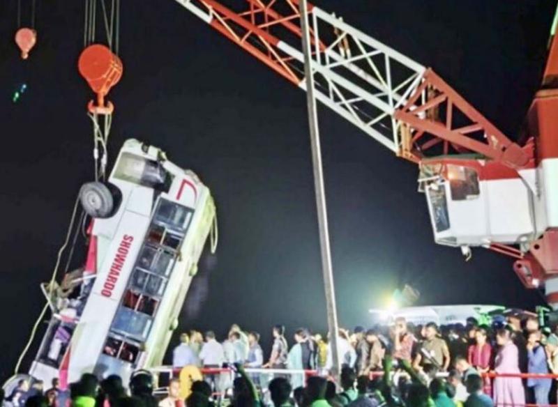 हादसे के तुरंत बाद राहत एवं बचाव कार्य शुरू कर दिया गया। सेना, पुलिस, अग्निशमन सेवा और तटरक्षक बल की संयुक्त टीमों ने खराब मौसम और चुनौतीपूर्ण परिस्थितियों के बावजूद करीब छह घंटे तक लगातार अभियान चलाया। क्रेन की मदद से बस को नदी से बाहर निकाला गया। जब बस को बाहर निकाला गया, तो उसमें से 14 शव बरामद हुए, जबकि इससे पहले गोताखोरों ने दो महिलाओं के शव निकाल लिए थे। मृतकों की संख्या बढ़कर अब कुल 26 हो गई है।