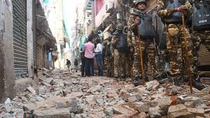 बुलडोजर और मजदूरों की टीम ने संभाली कमान, लगातार गिर रहे भवन