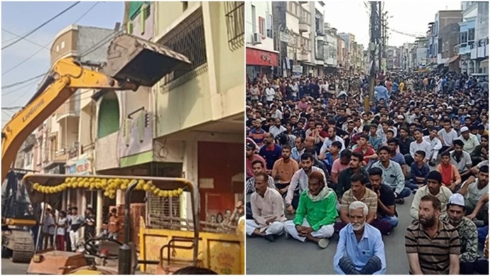 महाकाल लोक क्षेत्र में अवैध मकान-होटलों पर चला बुलडोजर