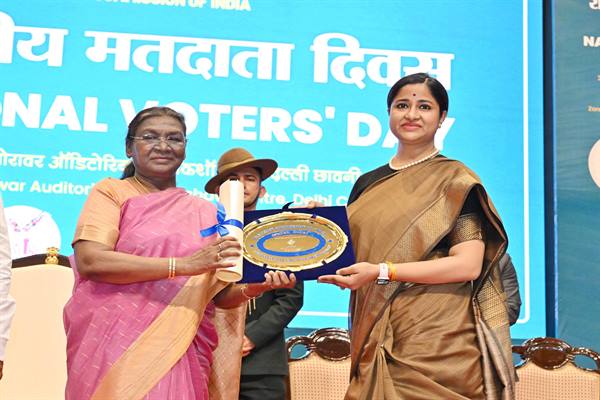 राष्ट्रपति मुर्मु ने स्वीप गतिविधियों के लिये झाबुआ कलेक्टर नेहा मीणा को किया सम्मानित