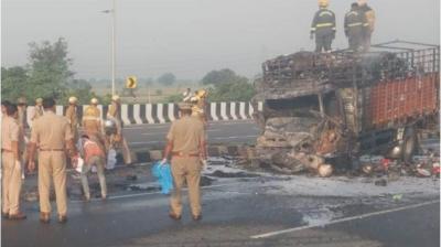 कार में सवार परिवार की चीखें थमीं आग में: कैंटर से भिड़ंत के बाद जिंदा जलने की दर्दनाक घटना